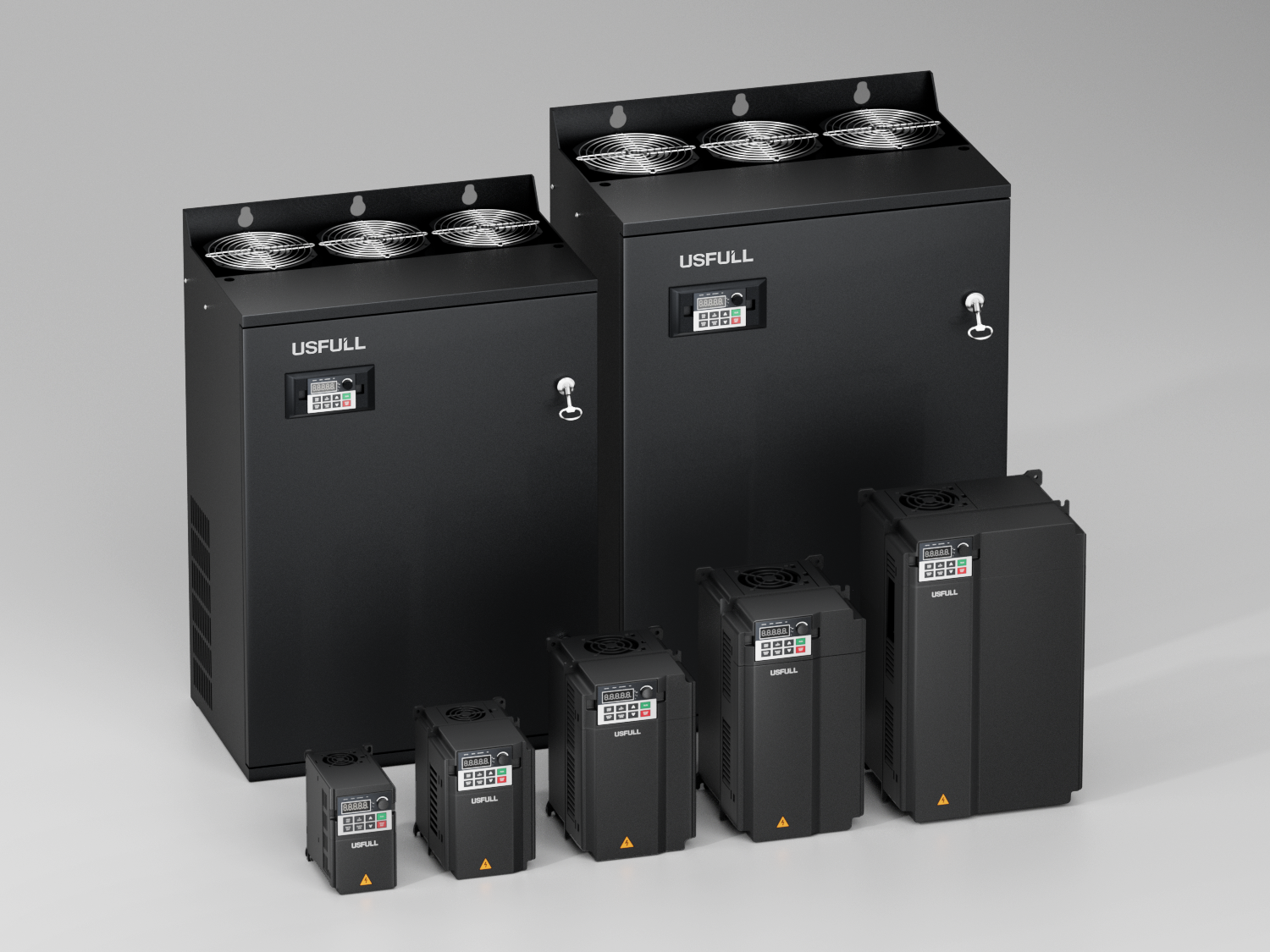 USFULL生產(chǎn)涵蓋全功率范圍(0.75kW至630kW)的逆變器,包括通用型號以及針對風扇、水泵、機床主軸等應(yīng)用的專用型號,能夠滿足精確速度調(diào)節(jié)和節(jié)能的需求。采用智能制造和全流程質(zhì)量控制。